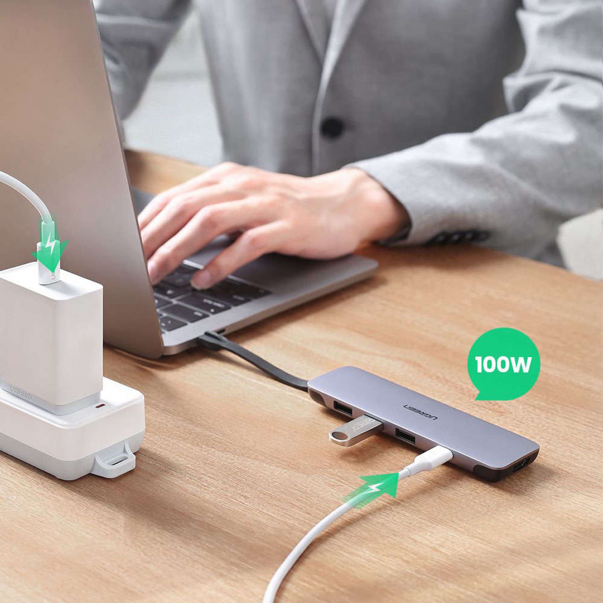 آداپتور 5 در 1 UGREEN CM285 هاب USB-C به 3 عدد USB 3.0 + HDMI + USB-C PD – توضیحات